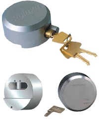 SHACKLESS PADLOCKS(PUCK) Maximum Strength Specially manufactured to properly operate for metal door & freight line and automotive Security Solid stainless steel available(SS2000#)